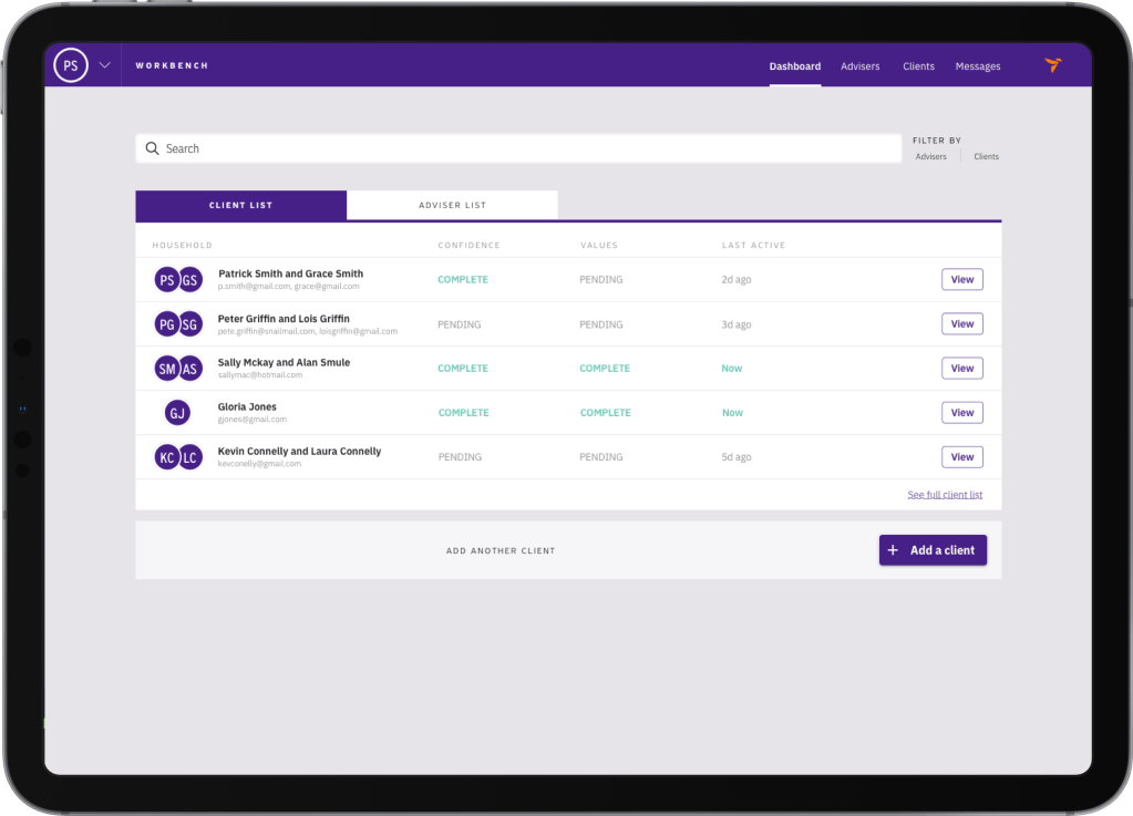 Our challenge was to understand the current financial advice journey and deliver a new end-to-end software enabled process, compliant from the ground up, that helped advisers engage and retain clients at scale. We found that the key to client engagement was for the adviser to have structured tools to understand what clients really want out of life and to demonstrate how they could help them align to their values and achieve their goals.