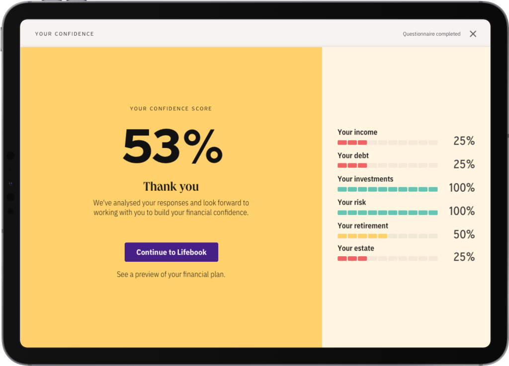 - Your Confidence: a survey for clients to self-assess areas of their financial life