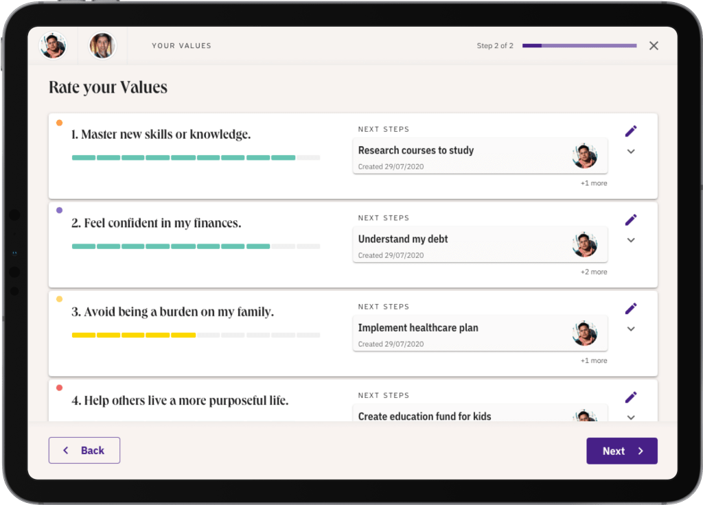 Our hypothesis was that by providing a tool to shift the conversation to a higher level, based on life values not money, advisers could foster longer more valuable relationships with their clients.