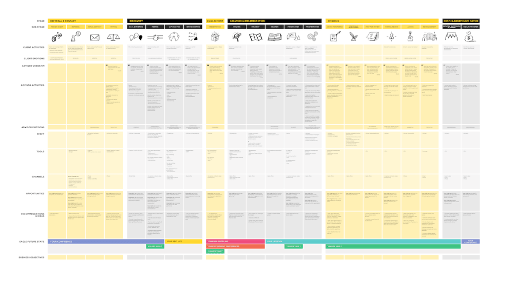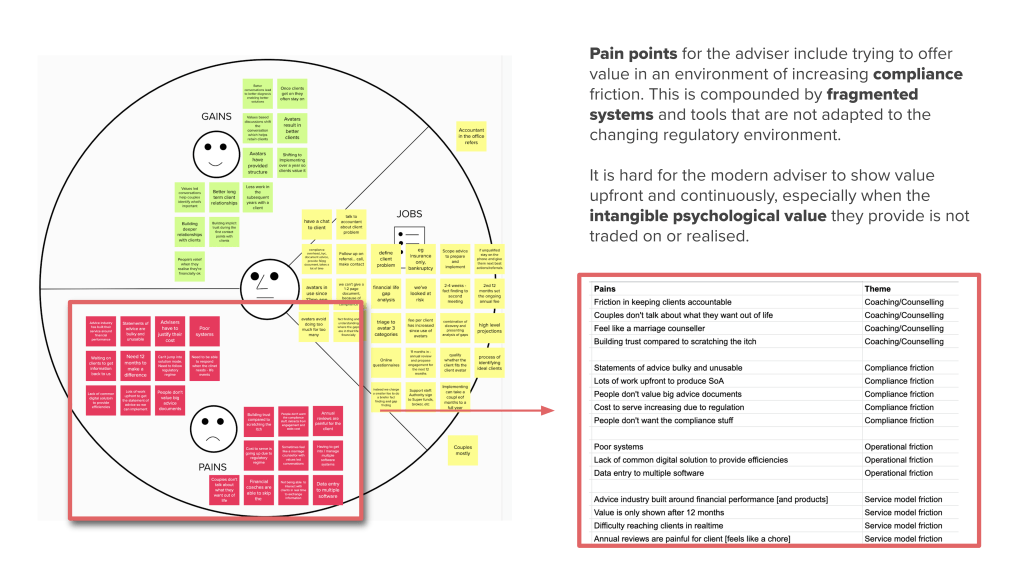 In discovery we researched pain points and opportunities in the adviser-client journey, based on interviews across the foundation group of advisers. Several modules for the platform experience were mapped out and prioritised.