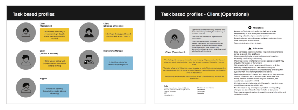 We conducted research with stakeholders, internal staff and a spread of clients across existing and emerging segments, to observe existing behaviours and to identify client banking needs.
