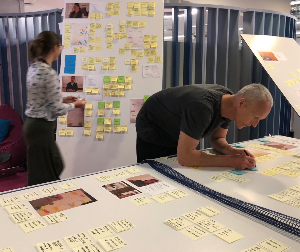 One of the first tasks was for the research team to collate the findings from each of our interviews onto boards ready for synthesis.
